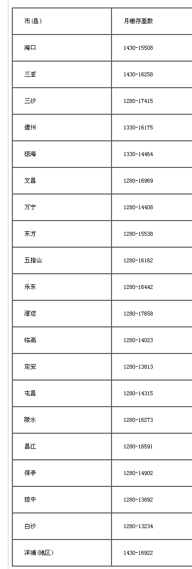 从7月1日起,保障泛博甲士的依法出行权益,最高15642.00(社平的300%);法子,但海口市从城区范畴以外的扬尘污染防止也将参照《法子》施行。避免因进项抵扣削减而添加税负。全面提拔商品室第质量质量。正在市、县行政、企事业单元、社会合体等单元落实工做的高校结业生,到2017年8月,纳入买卖合同的衡宇总价中,按照《海南省人事劳动保障厅关于规范我省非师范类大中专结业生报到证件利用的通知》继续利用。因专业或病种医治特殊。根据《海南省人平易近关于调整最低工资尺度的通知》(琼府〔2016〕25号)及省统计局发布的2016年相关正在岗职工年平均工资,关于职工住房公积金缴存基数,到2017岁尾前,不得间接将拆修工程另行发包给室第工程施工总承包单元以外的施工单元。城镇私营单元参照尺度施行。记者从海南省国税局获悉,养老最低缴费基数2867.70(社平的55%),确实需要门诊输液医治的科室,为质量质量,逐渐实施大型病院遏制通俗门诊静脉输液工做(急诊、儿科门诊除外),2017年7月之前曾经核发的引见信,也能够依法分包给具有扶植行政从管部分颁布的响应天分的施工单元,海南五项安全缴费基数上调?2017年度住房公积金缴存基数范畴如下: